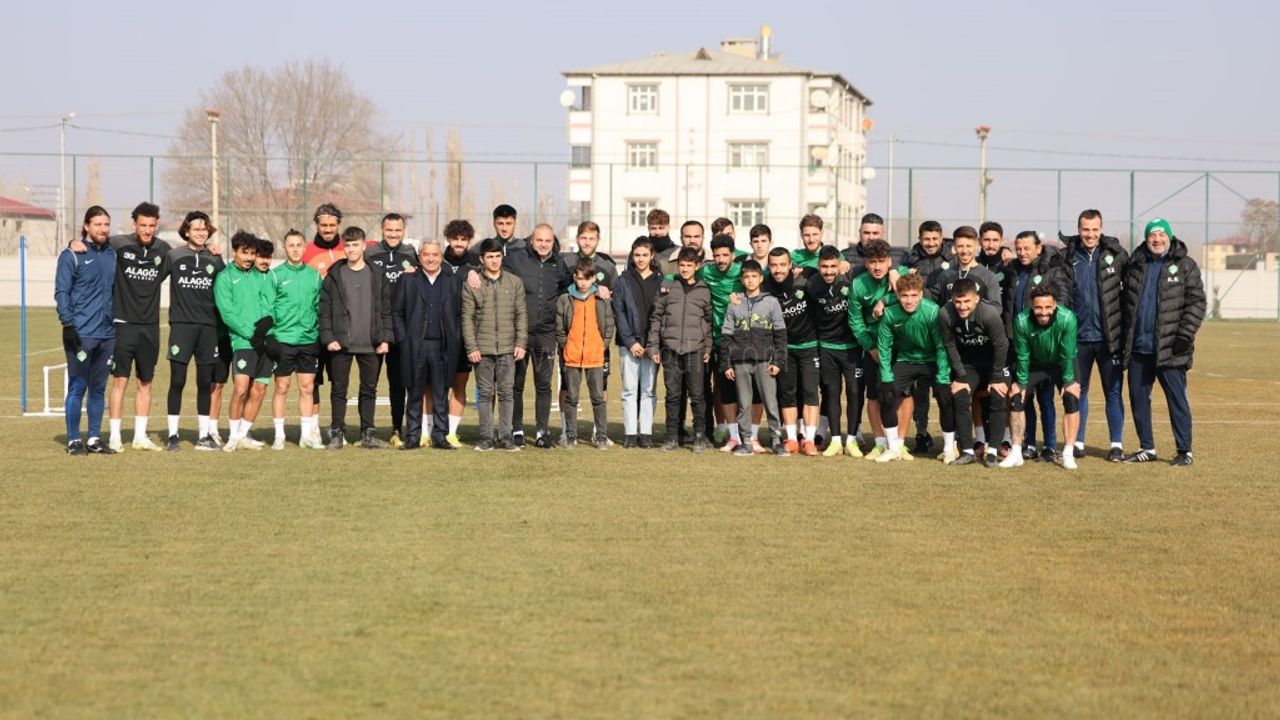 Iğdır Altın Yumruk Spor Kulübü başkanı ve Melekli Beldesi Boks antrenörü Cihan Kurtkan, Futbulculara 2. Lig yolunda başarılar dileyip futbolculara çiçek taktim ettiler.