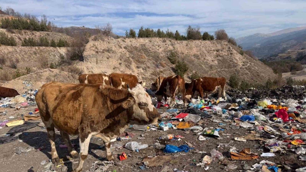 Ardahan’ın Posof ilçesinde başlarında çoban olmadan bırakılan inekler çöplüğü mesken edindi. İneklerin çöpleri yemesi hem hayvan sağlığı hem de insan sağlığı açısından tehlike saçıyor.