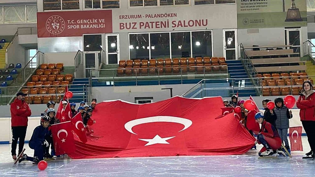 Palandöken Buz Pateni Salonunda düzenlenen Cumhuriyet Bayramı kutlaması renkli görüntülere sahne oldu.