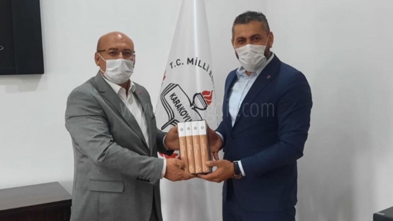 Eğitim-Bir-Sen Iğdır Şube Başkanı Erkan Çiğdem, Kurucu genel başkanımız merhum Mehmet Akif İNAN"ın eserlerinden oluşan külliyatı, Eğitim-Bir-Sen tarafından hazırlanan 'Pandemi Döneminde Öğrenme Kayıpları" ve 'Okul Öncesinde Din ve Ahlak Eğitimi" raporumuzu sayın müdürümüze takdim ettik.
