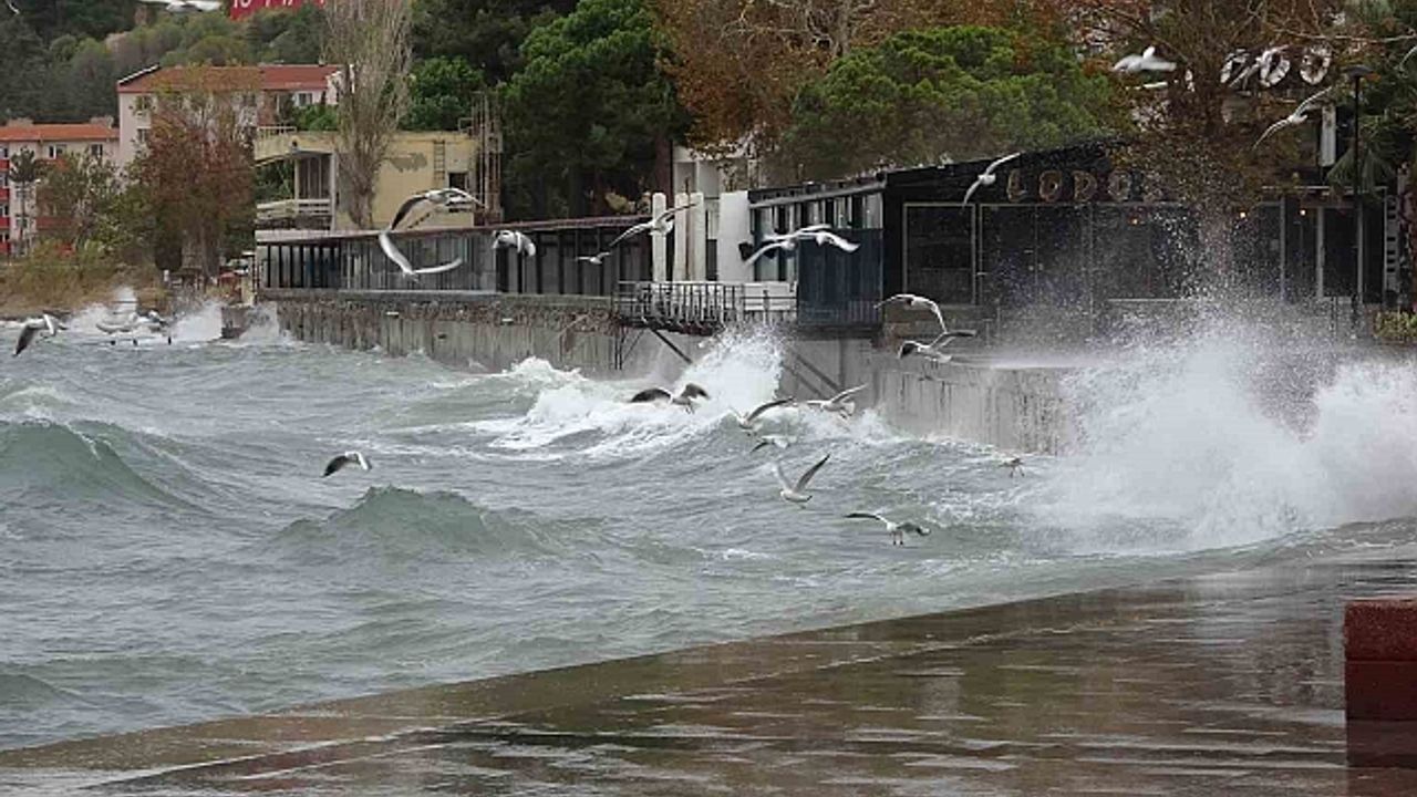 Çanakkale Boğazı''nda saatteki hızı zaman zaman 80 kilometreyi bulan lodos fırtınası nedeniyle Çanakkale-Kilitbahir hattındaki feribot seferleri iptal edildi. Fırtına nedeniyle dev dalgalar kordon boyunda sahili adeta dövdü.