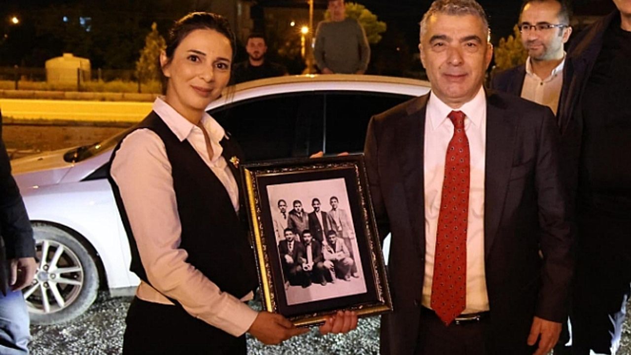 Iğdır Halk Oyunları İl Temsilcisi Suna Sili, Alagöz"e ortaokul yıllarında arkadaşlarıyla birlikte çektirdiği bir fotoğrafı çerçeveleterek hediye etti.