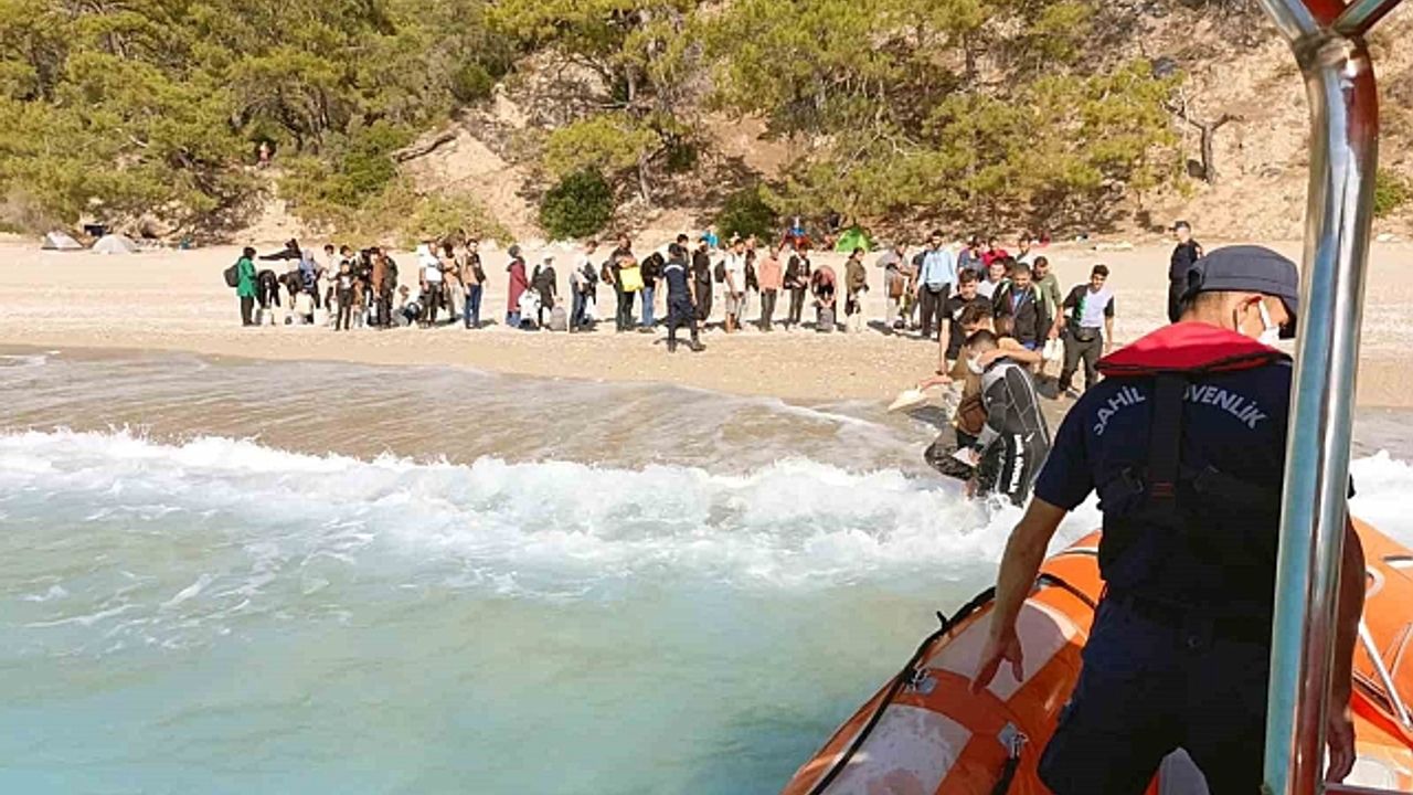 Fethiye ilçesi Cennet Koyu''nda bir grup düzensiz göçmen olduğu bilgisinin alınması üzerine görevlendirilen Sahil Güvenlik Botu, Sahil Güvenlik Dalış Timi ve Seydikemer İlçe Jandarma Karakol Komutanlığı personeli ile müştereken kara üzerinde bulunan 49 düzensiz göçmen (beraberinde 3 çocuk) yakalandı.