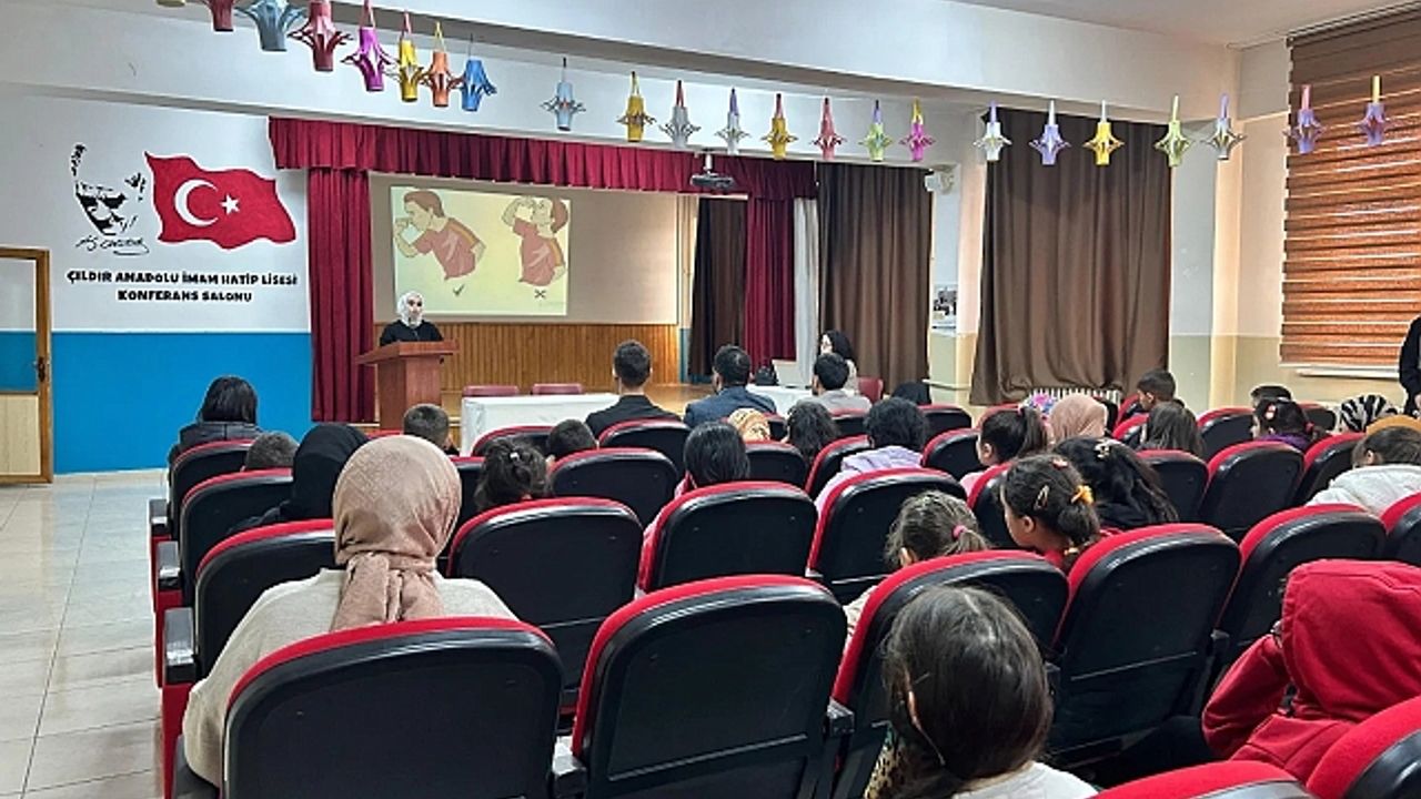 Çıldır Devlet Hastanesi Görevlileri tarafından Çıldır İmam Hatip Lisesi ve Ortaokulu öğrencilerine sigara ve teknoloji bağımlılığı, bağımlılıkla mücadele, ilk yardım ve hijyen eğitimi konularında bilgilendirmelerde bulunuldu.