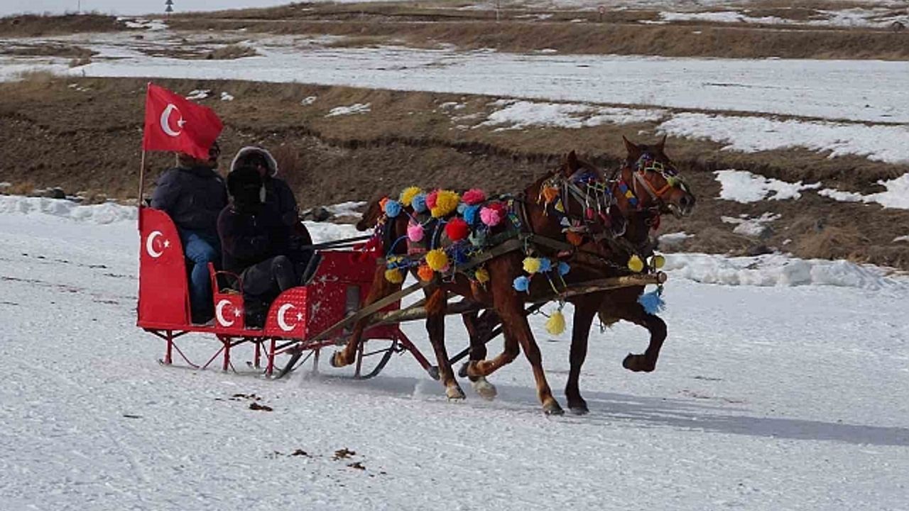 Doğu Anadolu''nun en büyük ikinci gölü olan Çıldır Gölü, hafta sonu buz üstünde gezmek ve atlı kızak keyfini yaşamak isteyenlerin uğrak yeri oldu.