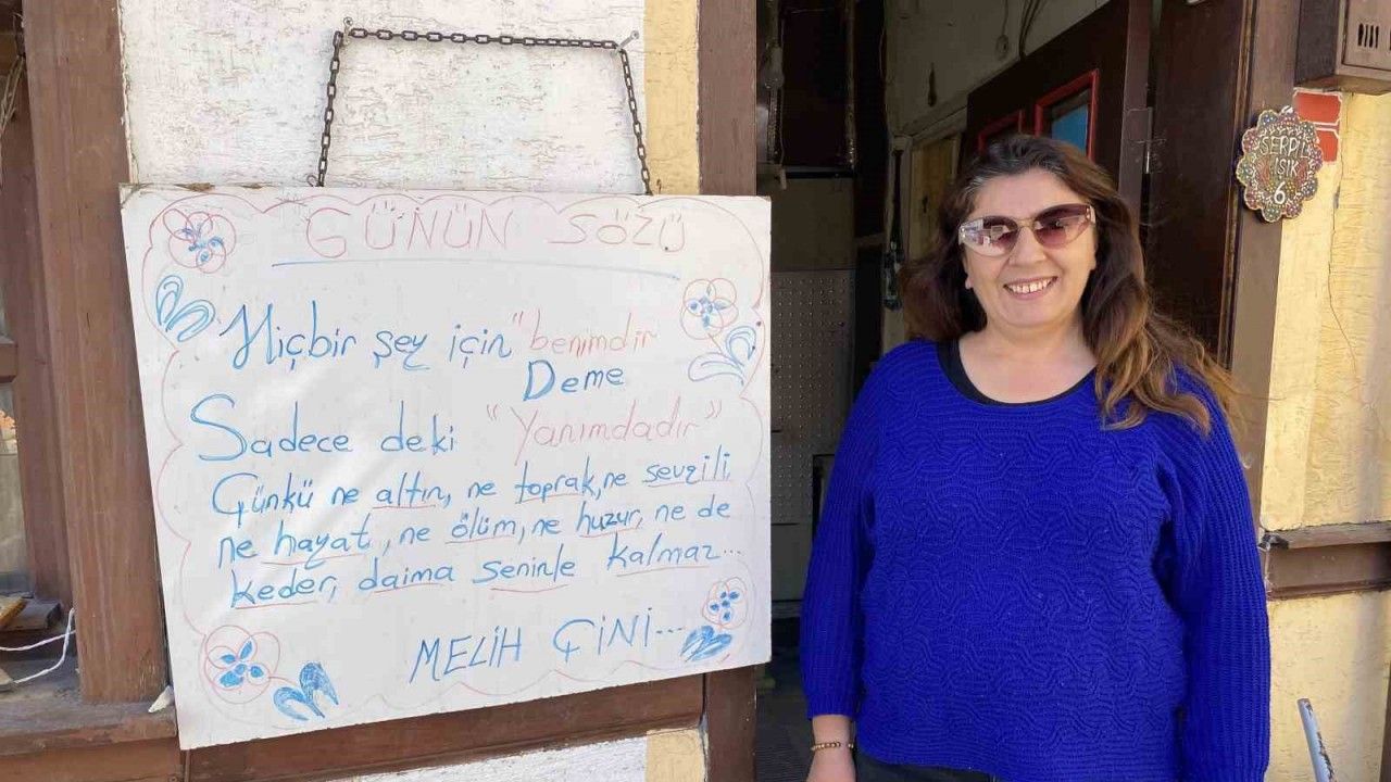 6 Şubat 2023’te Kahramanmaraş’ta 7,8 ve 7,5 büyüklüğünde 2 büyük deprem meydana geldi. Çok sayıda yapının yıkıldığı depremde 50 binden fazla vatandaş hayatını kaybetti. Tarihi Odunpazarı Evleri bölgesinde çini atölyesi bulunan Serpil Işık, yaşanan üzücü gelişmelere dikkat çekmek amacıyla dükkanının önündeki beyaz tahtaya 7 Şubat 2025’te bir yazı yazdı. ’Günün Sözü’ başlıklı yazıda, "Hiçbir şey için ’benimdir’ deme. Sadece de ki, ’yanımdadır.’ Çünkü ne altın, ne toprak, ne sevgili, ne hayat, ne ölüm, ne huzur, ne de keder daima seninle kalmaz" ifadeleri yer aldı. Yaklaşık 2 yıldır aynı yerde duran yazının anlamlı mesajı, çevreden geçen vatandaşların dikkatini çekti.