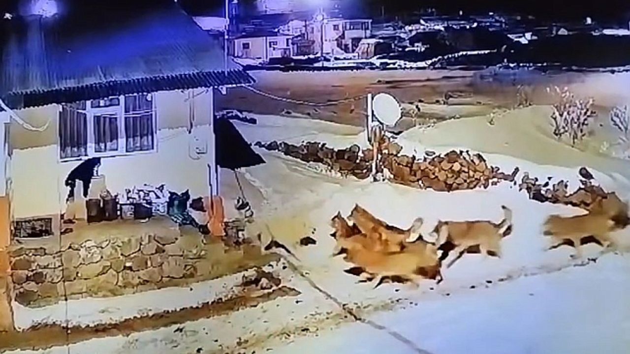 Kış şartlarının çetin geçtiği Ardahan''da yiyecek bulmakta zorlanan kurtlar zaman zaman yerleşim yerlerine inerek köpekleri hedef alıyor. Önceki gün kaydedilen bir görüntü ise izleyenleri adeta dehşete düşürdü. Görüntülerde gece yarısı kurt sürüsünün hedef aldığı köpeğin saldırılara çaresizce karşı koymaya çalıştığı görülüyor. Köpeğin bağrışlarına uyanan sahibi ise gördükleri karşısında hayrete düştü.
