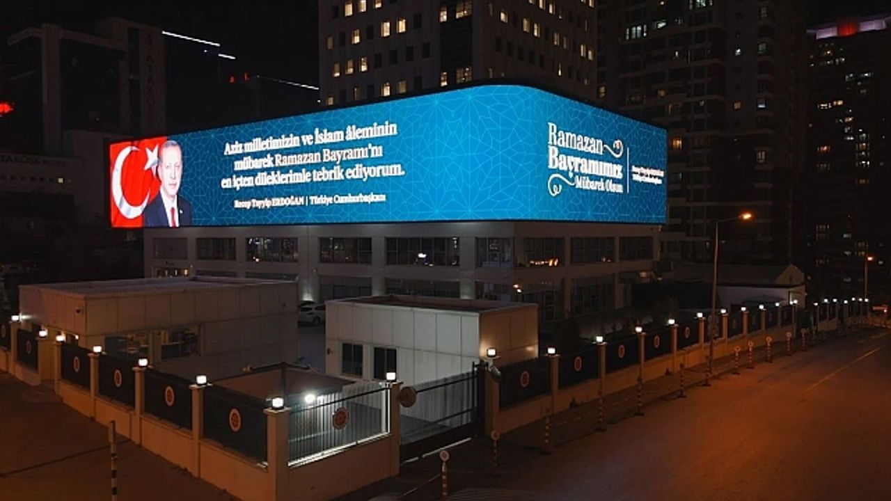 Cumhurbaşkanlığı İletişim Başkanlığı''nın dijital ekranında, Cumhurbaşkanı Recep Tayyip Erdoğan''ın Ramazan Bayramı mesajı yayınlandı.