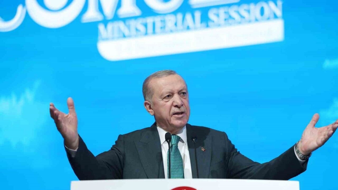 Erdoğan sözlerini şöyle sürdürdü, "Bugün ayrıca Kuzey Kıbrıs Türk Cumhuriyeti’nden gelen kardeşlerimiz de aramızda. Kendilerine de tüm kalbimle hoş geldiniz diyorum. Kıbrıs Türk halkı, İslam dünyasının ayrılmaz parçasıdır. Özellikle bu kimliklerinden dolayı on yıllardır haksız, hukuksuz ve acımasız bir izolasyona tabi tutuldukları ne yazık ki bir hunharca gelişmedir. Ama buna rağmen Kıbrıs Türkü kardeşlerimiz baskılara boyun eğmediler. Kendi vatanlarında onurluca yaşama iradesinden vazgeçmediler. Egemen eşitliklerini tartışma konusu yapmadılar. Bölgemizde kurgulanan yeni emperyalist oyunda Kıbrıs adasının da menüye eklenmek istendiğine dair güçlü sinyaller alıyoruz. Teşkilatımızın Kıbrıs Türk halkıyla dayanışmasını daha da artırmasını bu bakımdan çok önemli görüyorum. Sizlerden Kıbrıs Türklerinin iki devletli çözüm temelinde yürüttükleri hak, özgürlük ve adalet mücadelesine daha fazla omuz vermenizi bekliyorum. İnşallah anavatan ve garantör ülke olarak biz de Kıbrıs Türk halkını asla yalnız bırakmayacak, haklı davalarında daima yanlarında olacağız."