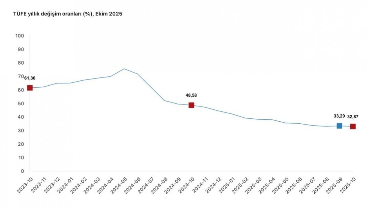 Yılmaz, orta vadeli hedeflere uyumlu politikanın korunduğunu belirterek, "Tüketici enflasyonu ekim ayında yüzde 2,55 oranında gerçekleşirken, gıda fiyatlarında don ve kuraklığa bağlı olumsuz etkilerin hız kestiği, enerji fiyatlarındaki ılımlı seyrin devam ettiği, hizmet enflasyonunun ise belirgin şekilde yavaşladığı görülmektedir. Giyim ve ayakkabı fiyatları ise geçen senin aynı ayında olduğu gibi geçici şekilde artış kaydetmiştir. Ekim ayında yıllık enflasyon yüzde 32,87’ye gerilemiş olup dezenflasyon süreci devam etmektedir. Bu görünüm, orta vadeli hedeflerle uyumlu patikanın korunduğuna işaret etmektedir" açıklamasında bulundu.