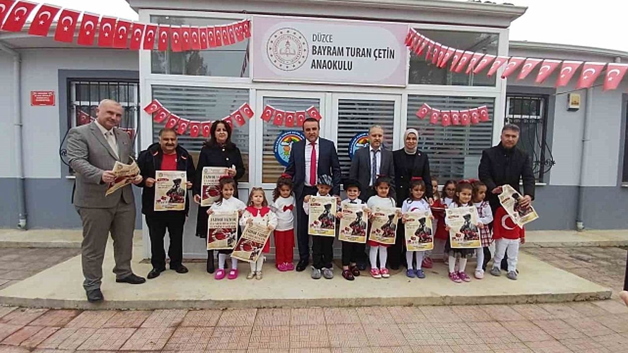 Düzce(İHA) – Anaokulu öğrenciler Cumhuriyetin ilan edildiği 1923 yılını özel hazırlanan gazeteleri dağıtarak yeniden hatırlattı. Dönem kıyafetleri giyerek Cumhuriyetin ilan edildiği haberini okula ziyarete gelen müdürlere ileten minikler, ilgi odağı oldu.