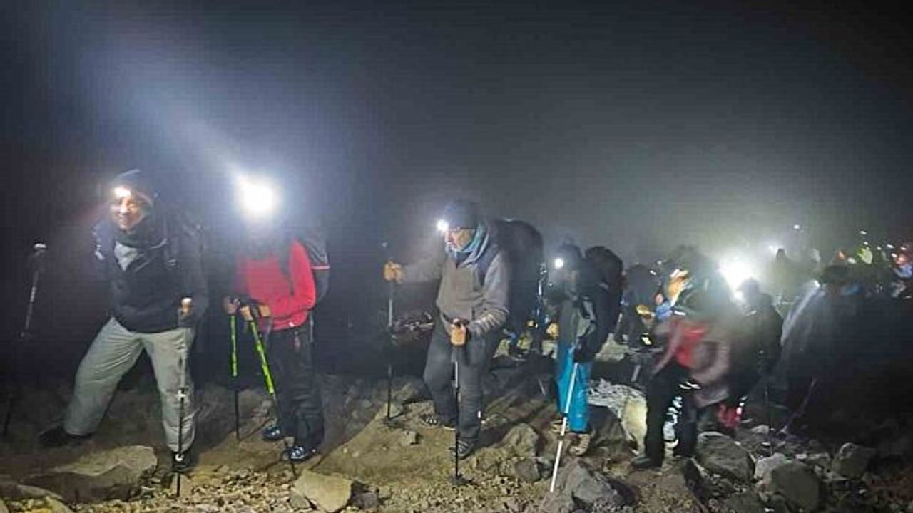Dağcılar, yerel rehber Resul Civaş liderliğinde saatler süren bir yürüyüşün ardından 3 bin 200 rakımdaki kamp alanına ulaştı. Yüksek rakıma uyum sağlamak ve dinlenmek için burada kamp kuran dağcılar, geceyi çadırlarda geçirdi. Ertesi gün yeniden yürüyüşe başlamak isteyen dağcılar, dolu ve sağanak yağış engeli ile karşılaştı. Atlarla 4 bin 200 rakamındaki kampa ulaşan dağcılar, dinlendikten sonra son hazırlıklarını yaparak zirve tırmanışına küçük adımlarla devam etti. Buzulların üzerinde yürüyerek zirveye ulaşan dağcılar, zirvede büyük bir mutluluk yaşadı. Aylar sonra zirvede güzel havanın etkili olduğunu söyleyen Civaş, zirvede fotoğraf çekti.