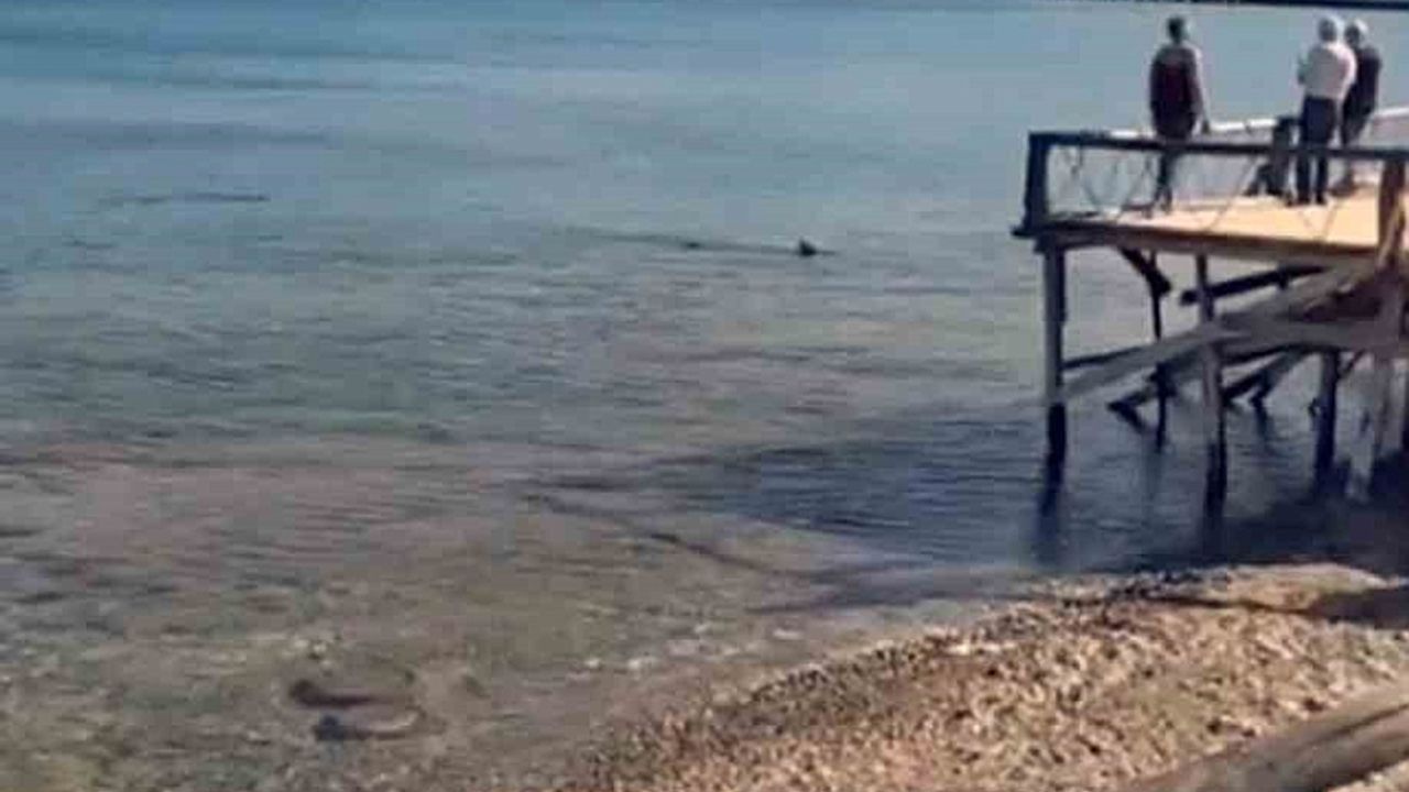 Açık denizden avlanmak için kıyı bölgesine geldikleri tahmin edilen köpek balıkları, çevredeki vatandaşlar tarafından cep telefonu kamerasıyla kayda alındı. Görüntülerde, suyun hemen altında süzülen iki köpek balığının bir süre bölgede dolaştıktan sonra gözden kaybolduğu görüldü.