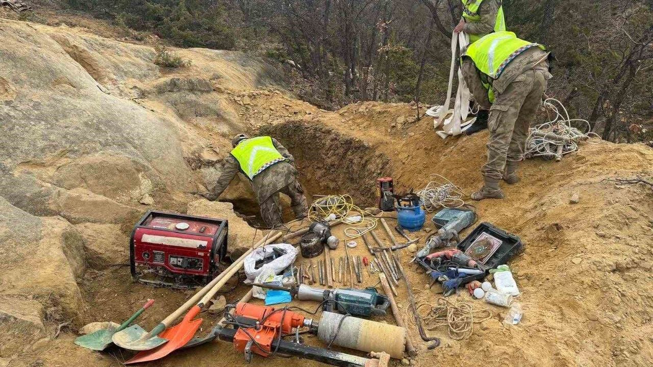 Olay yerinde yapılan aramalarda; 3 cep telefonu, 1 matkap ve çantası, 1 carot makinesi, 1 jeneratör, 2 hilti, 1 vinç, çeşitli inşaat ve kazı ekipmanları ile birlikte toplam 114 adet kaçak kazı malzemesi ele geçirilerek muhafaza altına alındı.