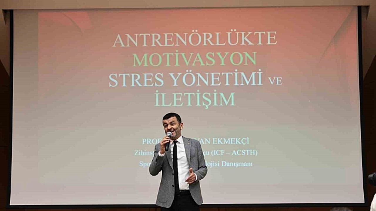 Denizli Büyükşehir Belediyesi Gençlik ve Spor Hizmetleri Dairesince düzenlenen ''Sporda Performans ve Motivasyon Eğitimi'', Pamukkale Üniversitesi Spor Bilimleri Fakültesi Spor Yöneticiliği Ana Bilim Dalı Başkanı Prof. Dr. Rıdvan Ekmekçi tarafından verildi.