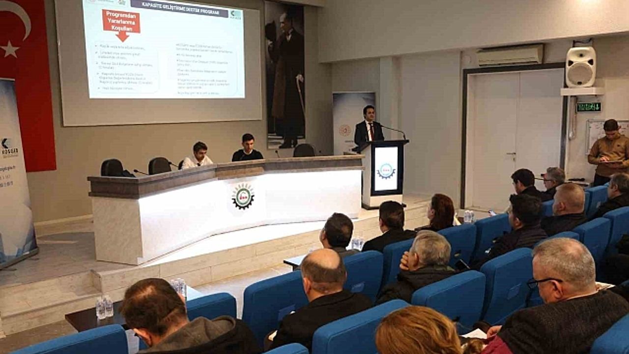 Denizli OSB konferans salonunda OSB''de faaliyet gösteren sanayicilere yönelik düzenlendiği "Küresel Rekabetçi ve Kapasite Geliştirme Destek Programı" konulu tanıtım toplantısında Kobi Uzmanı Ender Ayvacı katılımcıları gerçekleştirdiği sunumla destek programı hakkında bilgilendirdi.