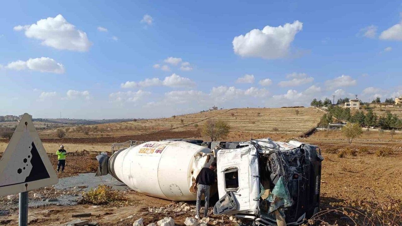 Mardin’de kontrolden çıkarak devrilen beton mikserinin sürücüsü yaralandı.