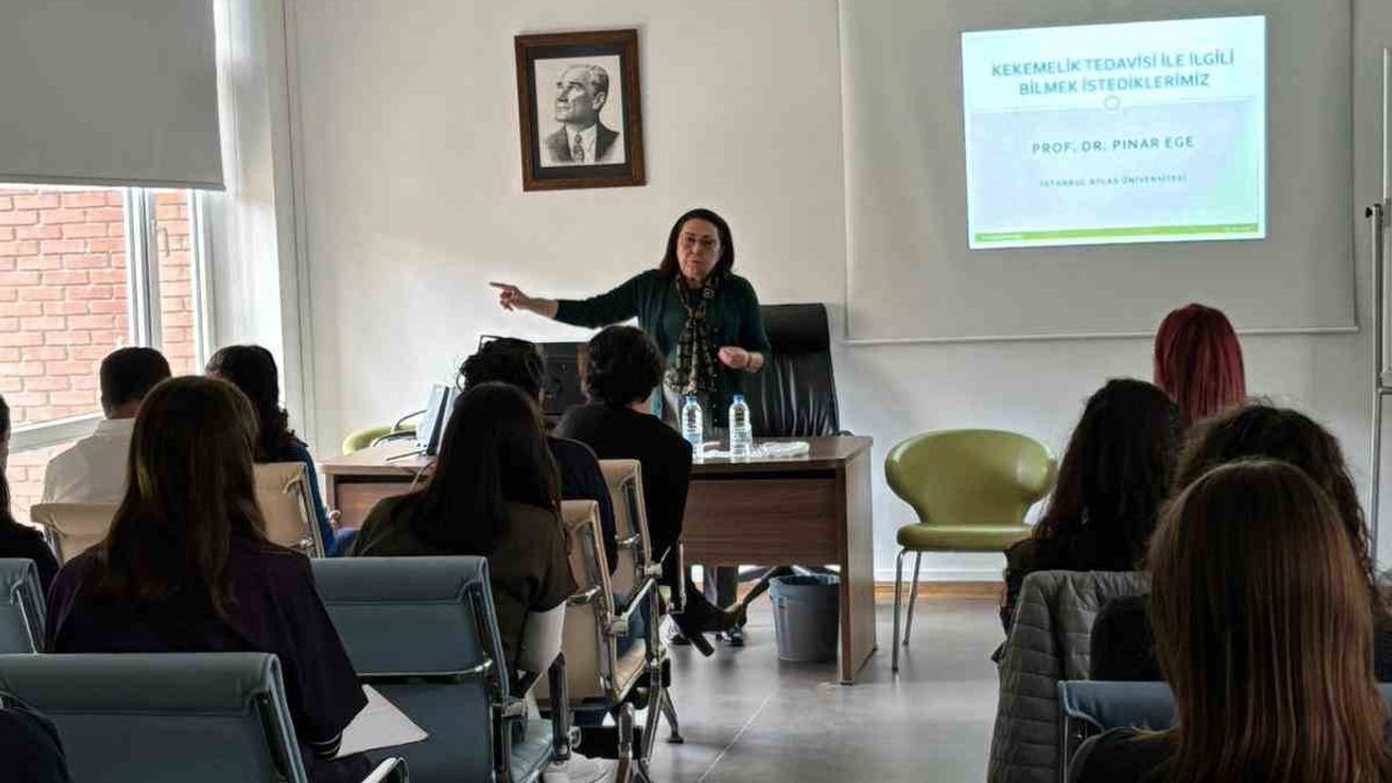 Seminer, Prof. Dr. Pınar Ege tarafından Prof. Dr. Seyhun Topbaş Seminer Salonu’nda düzenlendi. Güncel kekemelik tanımıyla sözlerine başlayan Prof. Dr. Ege, kekemeliğin nedenlerine ilişkin teorilerden söz etti. Kekemeliği açıklayan kesin bir teorinin henüz bulunmadığını, ancak farklı bakış açılarıyla geliştirilen çeşitli kuramların mevcut olduğunu belirten Ege, bu kuramların terapi yaklaşımlarına nasıl yansıdığını örneklerle açıkladı.