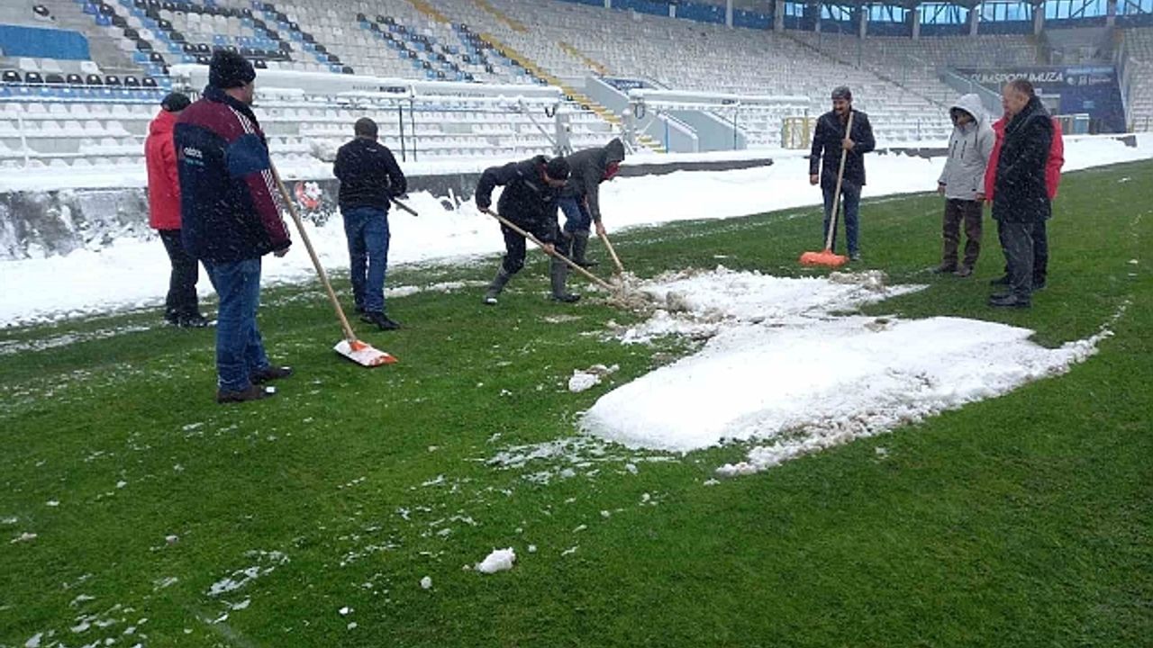Yoğun kar ve olumsuz havalar Erzurum''da günlük hayatı adeta felce uğratırken, Kazım Karabekir Stadı''nın zemini kış ortasında bile yeşilliğini koruyor.