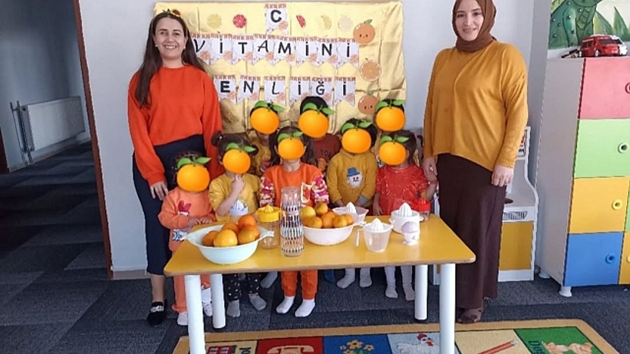 Diyadin Aile destek Merkezinde öğrencilere yönelik kış meyvelerini tanıtma, meyveleri sevdirme, organik meyve ve suyunu tüketimine özendirmek amacıyla, "Sağlıklı Yaşam İçin C Vitamini Şenliği" düzenlendi. C vitamininin önemini ve turuncu rengini öğrenmek için öğrenciler ve öğretmenlerin katılımıyla gerçekleşen şenlikte öğretmenleri rehberliğinde kesilen meyveler çocuklar tarafından sıkılarak hep birlikte afiyetle içtiler. Yapılan etkinlikle turuncu rengi pekiştirilip, C vitamininin önemi çocuklara anlatıldı.