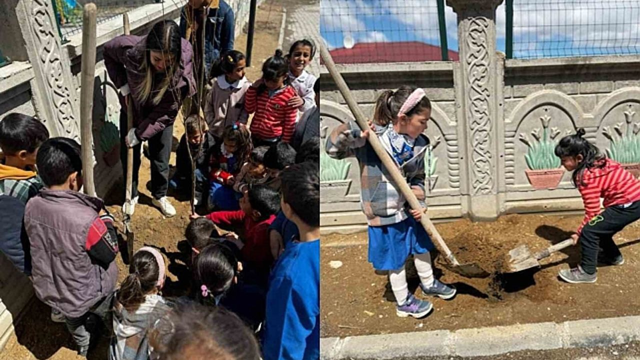 Ağrı''nın Diyadin ilçesinde bulunan Mehmet Melik Özmen İlkokulu öğrencileri, öğretmenleriyle birlikte okul çevresine ağaç dikti