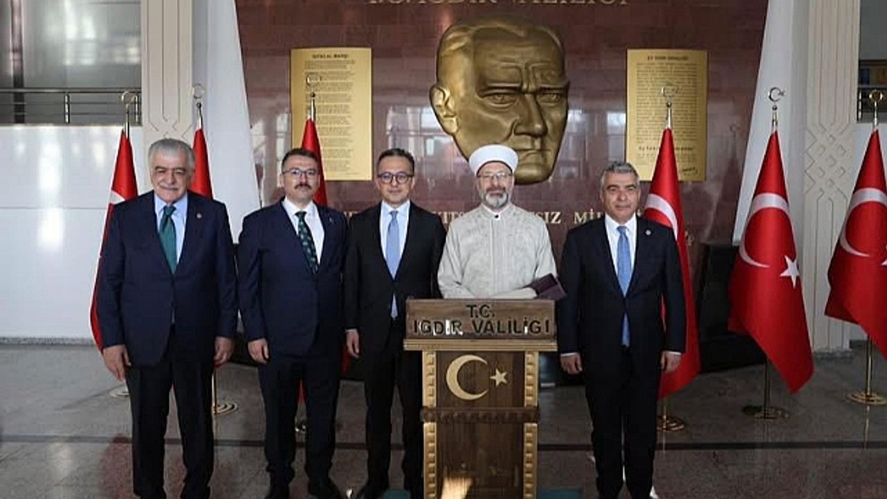 Heyet, Iğdır Milletvekili Cantürk Alagöz, İstanbul Milletvekili Şamil Ayrım ve AK Parti Iğdır İl Başkanı Ali Kemal Ayaz ile birlikte Iğdır Valisi Ercan Turan"ı makamında ziyaret etti.