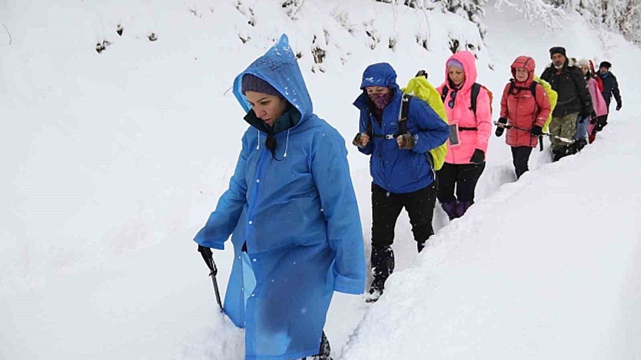 Bolu''da 23 doğasever, kar kalınlığının 70 santimetreyi aştığı 9 kilometrelik orman parkurunda yürüdü.