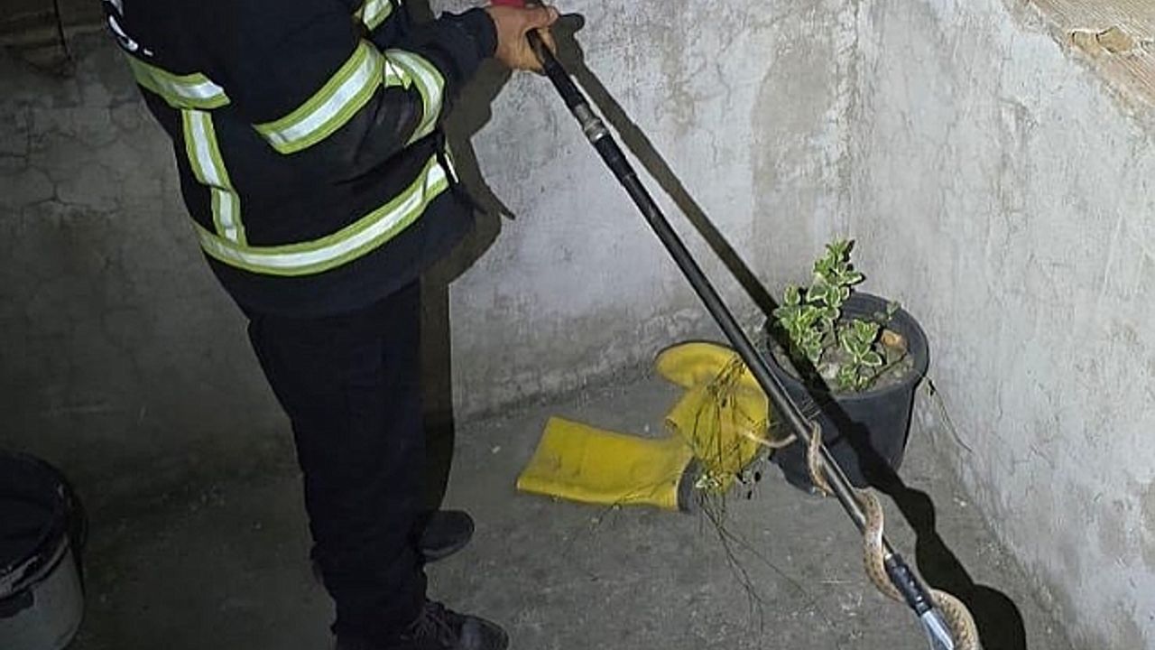 Dörtyol ilçesi Özerli Mahallesi''nde eve giren yılanı fark eden vatandaş durumu itfaiye ekiplerine bildirdi. Yılan, itfaiye ekipleri tarafından kısa sürede özel aparatla yakalandı. Yılan yaşam alanından uzak noktada doğal yaşam alanına bırakıldı.