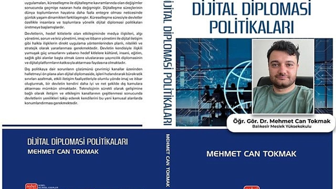 Balıkesir Üniversitesi Balıkesir Meslek Yüksekokulu Pazarlama ve Reklamcılık bölümü akademisyenlerinden Öğr. Gör. Dr. Mehmet Can Tokmak''ın kamu diplomasisi, kültürel diplomasi, halkla ilişkiler, iletişim ve dijitalleşmeyi ele alan eseri ''Dijital Diplomasi Politikaları'' uluslararası yayınevinden yayınlandı.