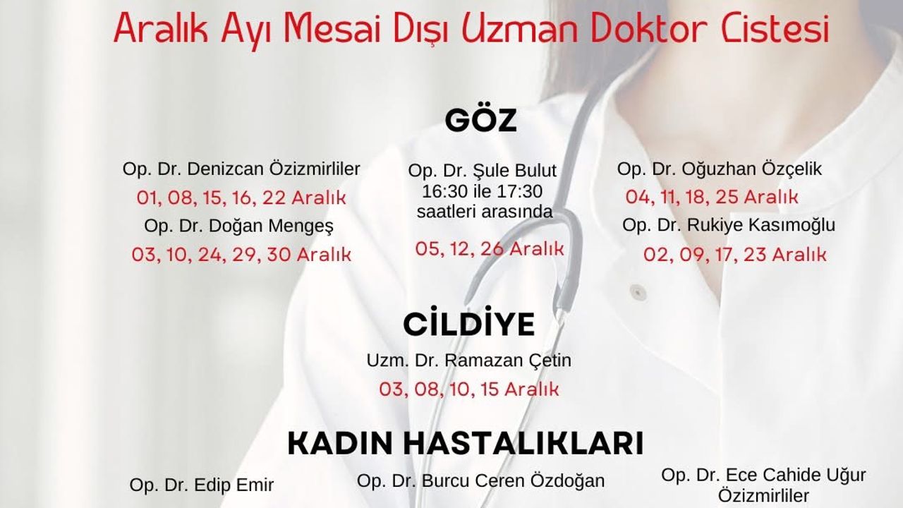 Aralık ayında görev alacak göz, cildiye ve kadın hastalıkları uzmanlarının listesi, İl Sağlık Müdürlüğü tarafından hazırlanan görselde ayrıntılı olarak duyuruldu.