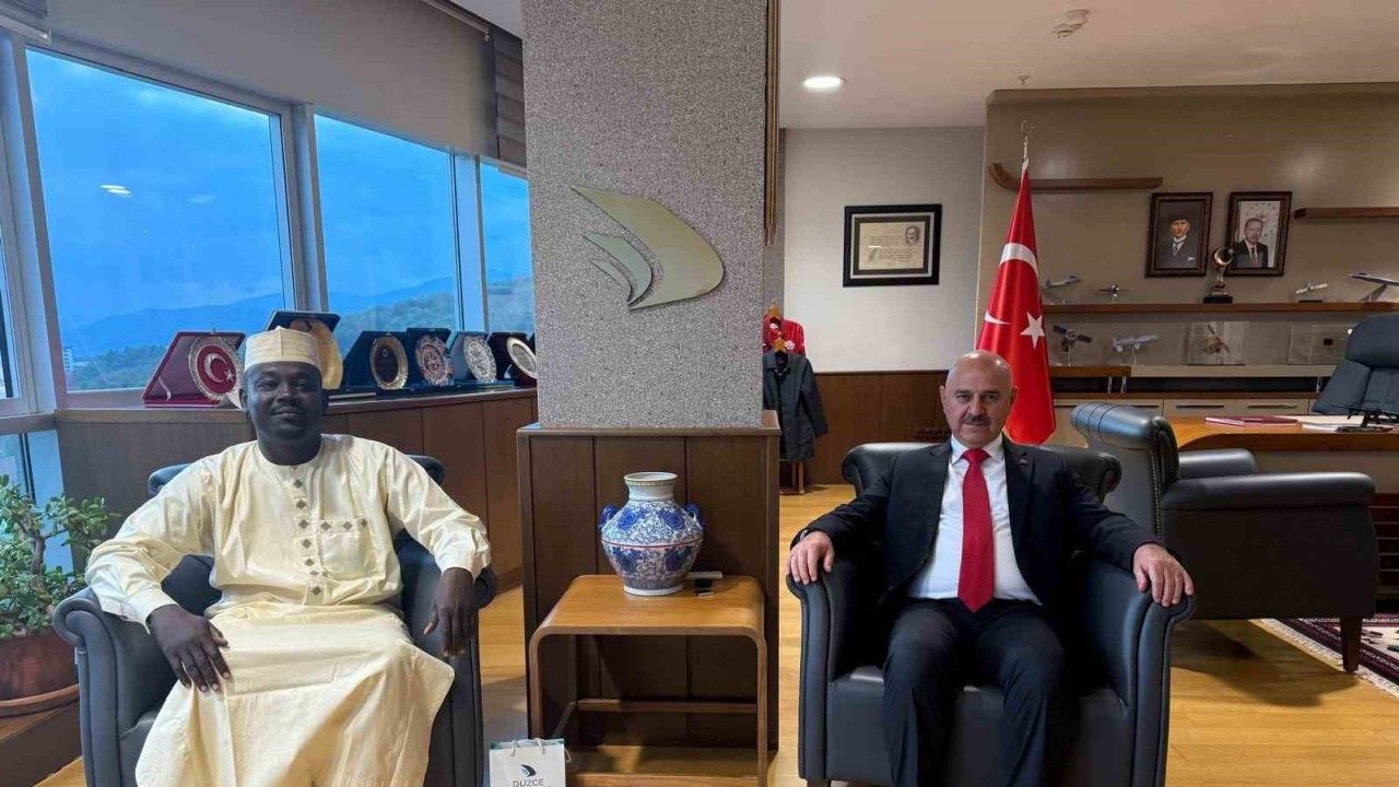Düzce Üniversitesi, uluslararası akademik iş birliklerini güçlendirmeye yönelik çalışmalarına bir yenisini ekledi. Bu kapsamda, Düzce Üniversitesi’nin iş birliği içinde olduğu Çad Kral Faysal Üniversitesi’nin Ziraat Fakültesi Dekan Yardımcısı Ibrahim Souleymane Mahamat, Düzce Üniversitesi’ne geldi. Ziyaret kapsamında Düzce Üniversitesi Rektörü Prof. Dr. Nedim Sözbir ile bir araya gelen Mahamat, daha sonra Düzce Üniversitesi birimlerini gezerek, iki üniversite arasında ortak projelerin geliştirilmesi, öğrenci ve personel hareketliliklerinin arttırılması ve tarım alanında karşılıklı deneyim paylaşımı konularında görüşmeler gerçekleştirdi.