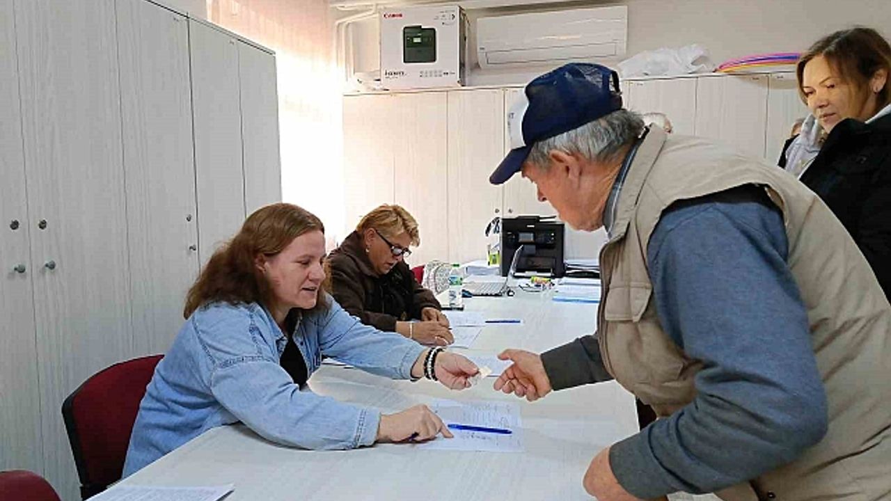 Oy kullanma işlemi öncesi sandık görevlileri vatandaşlarınkimlikbelgeleri ve pasaportlarını kontrol etti.