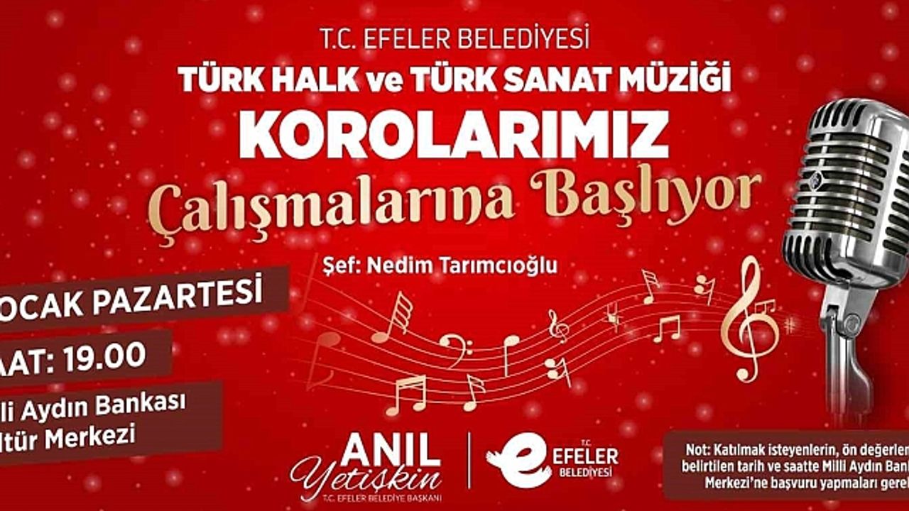 Efeler Belediyesi Türk Halk ve Türk Sanat Müziği korolarında yeni dönem başlarken, Efeler Belediye Başkanı Anıl Yetişkin koroya katılmak isteyen herkesi başvuru yapmaya davet etti.