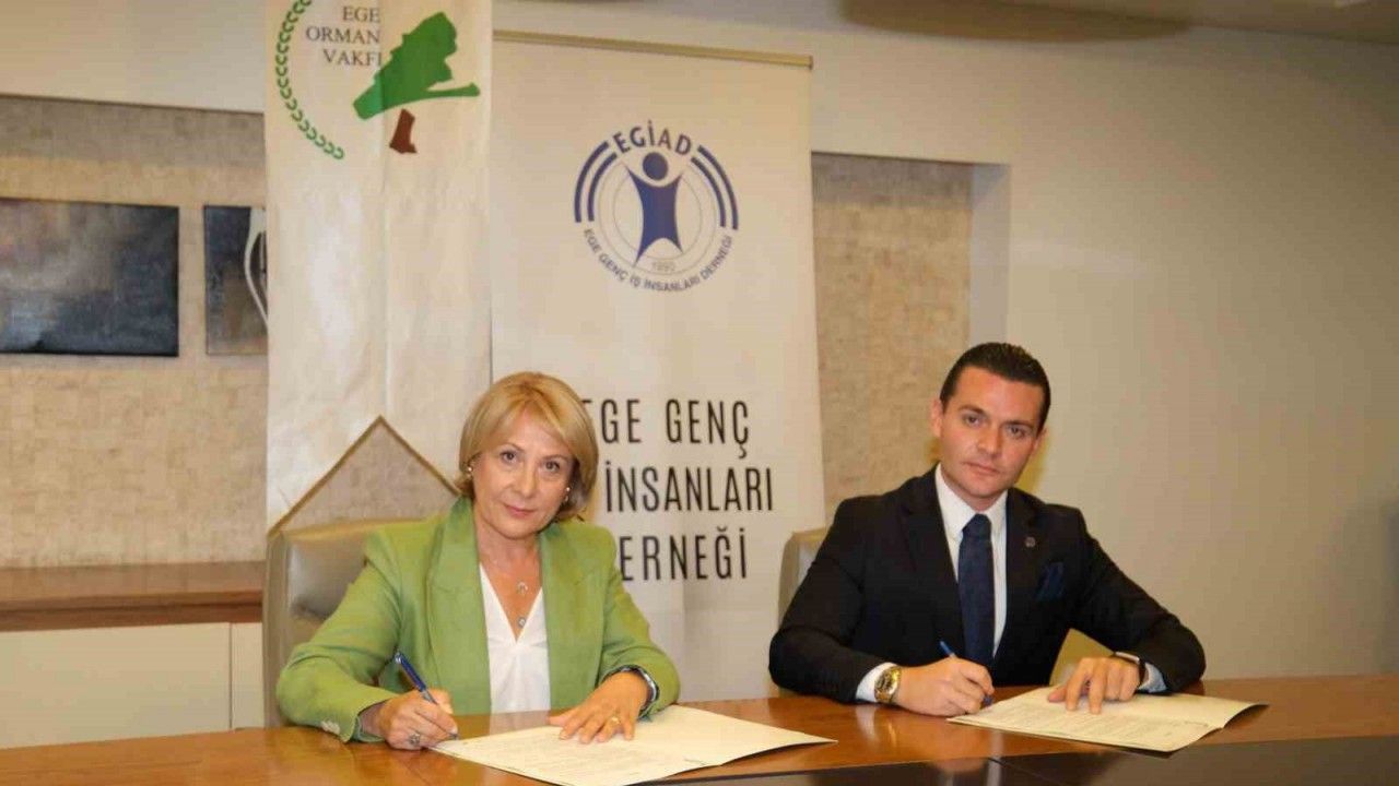 EGİAD Yönetim Kurulu Başkanı M. Kaan Özhelvacı ile Ege Orman Vakfı Genel Müdürü Perihan Öztürk tarafından protokol imzalandı. Protokol, İzmir-Çeşme Otoyolu kenarında, Karaburun Kavşağı yakınındaki bir parselde gerçekleştirilecek ağaçlandırma çalışmalarını kapsıyor. Proje kapsamında toplam 2 bin 150 adet fidan toprakla buluşacak.