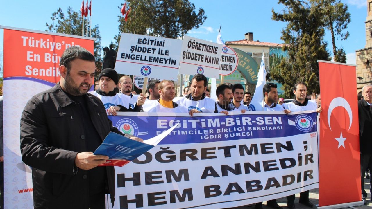 Tuzluca ilçesinde bir öğretmenin darp edilmesi üzerine Eğitim-Bir-Sen Iğdır Şubesi (Eğitimciler Birliği Sendikası) tarafından kınandı.