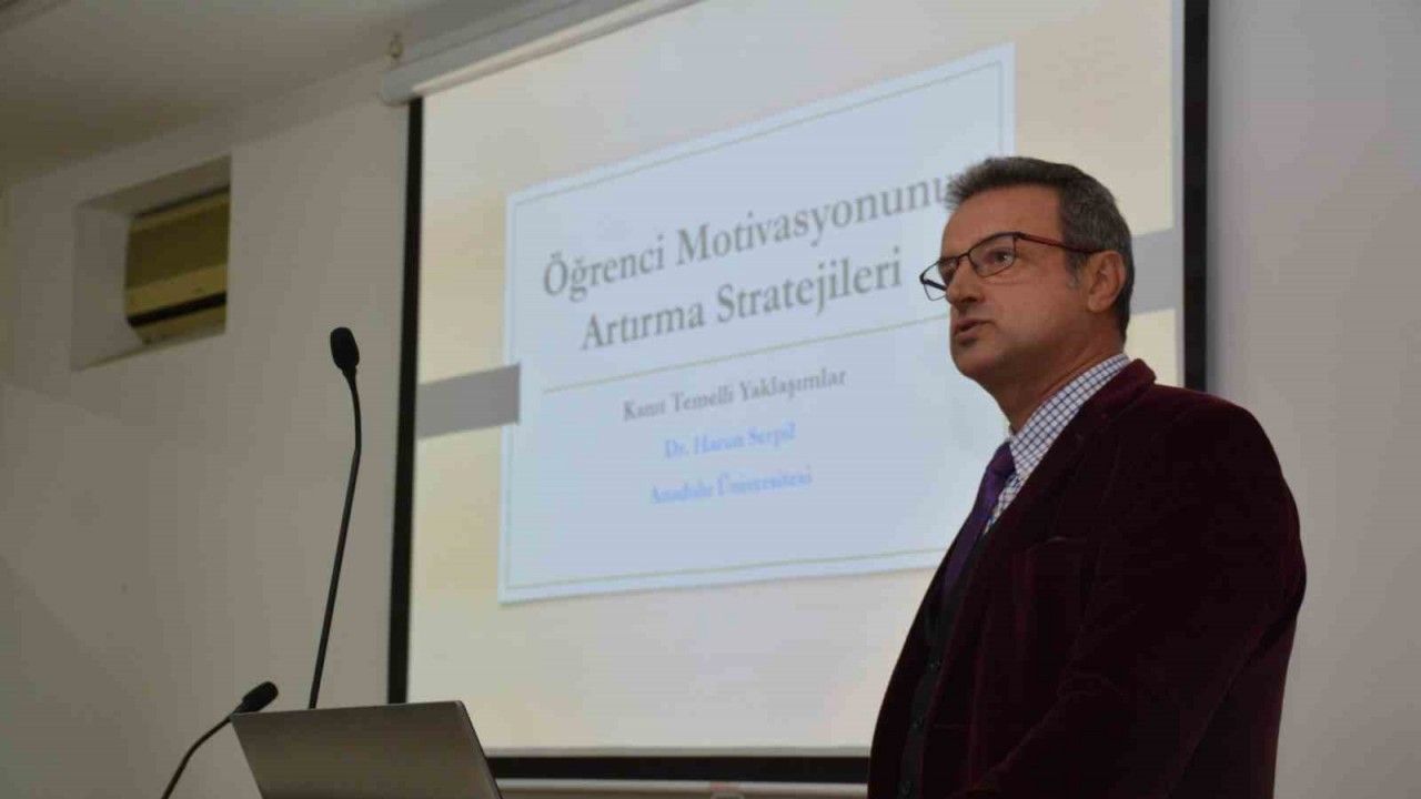 Anadolu Üniversitesi Eğitim Fakültesi tarafından düzenlenen ’Öğrenci Motivasyonunu Artırma Teknikleri’ seminerinde konuşan Dr. Öğr. Üyesi Harun Serpil, "Önemli olan, içsel ve dışsal motivasyonun her ikisinin de var olmasıdır. Ancak esas olan, içsel motivasyonu gerçekleştirebilmektir" dedi.