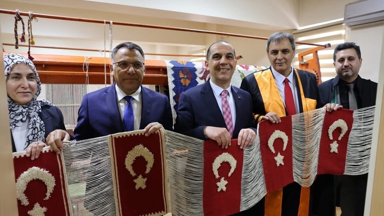 Iğdır Valisi M. Fırat Taşolar ile Üniversite Rektörü Ekrem Gürel, halı-kilim atölyesini ziyaret ederek yürütülen çalışmaları yerinde inceledi. Yetkililerden bilgi alan protokol üyeleri, geleneksel yöntemlerle dokunan kilimlerin üretim süreci hakkında detaylı bilgi aldı.
