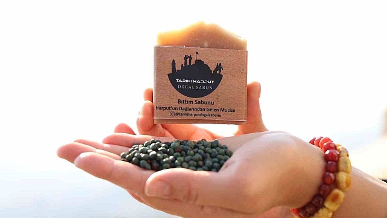 Doğal sabun üretimine ilk olarak 7 yıl önce başladığını dile getiren Tuba Bahçeci, "7 yıldır doğal sabun üretiyorum. Elazığ''ın markalarından olan tarihi Harput''un 5 bin yıllık bir geçmişi var. Bu Harput''tan yola çıkarak Harput''un dağlarında yetişmiş olan menengiçten ''tarihi Harput doğal sabununu'' ürettik. Burada toplamış olduğumuz menengiçleri ilk önce kavurup sonrasından öğütüp sabunun hammaddesi içerisine katarak sabuna değer katmış oluyoruz. Saç dökülmesi, egzema, sedef ve mantar gibi birçok rahatsızlığa iyi gelmektedir. Şimdiye kadar toplamda 50''ye yakın sabun üretiminde bulundum. İnsanlara en çok fayda sağlayan favori sabunlardan bir tanesi de bıttım sabunu. Bunu da marka değeri oluşsun diye ''Tarihi Harput Doğal Sabunu'' olarak şu an insanların faydalanabilmesi için piyasada" dedi.