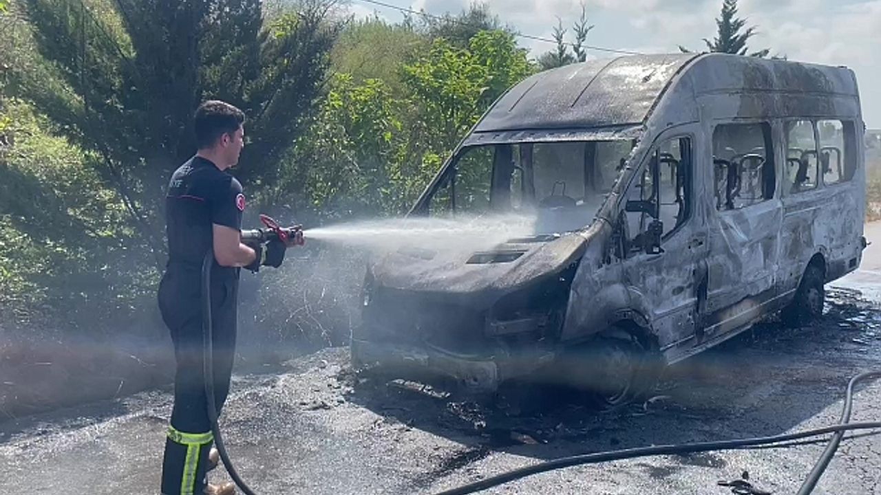 D-400 Karayolunda seyir halindeki minibüs motor bölümünde çıkan yangın sonucunda yanarak kullanılamaz hale geldi.