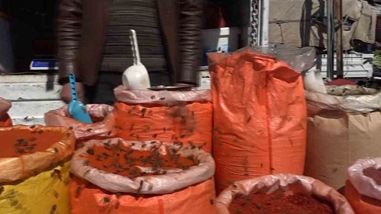 Şehir merkezine yakın bir yerlerde konuşlandırıldığı anlaşılan bal arıları kovanlarından çıkarak şehir merkezindeki baharatçıya akın etti. Tam olarak anlaşılamayan bir sebeple seyyar baharatçının önünde yoğunlaşan bal arıları karabiber, kimyon gibi baharat çeşitlerine konarak besin almaya çalıştı. Bu yoğunluğu gören vatandaşlar da hayretlerini gizleyemedi. Arıların baharat çeşitlerine konarak baharatların önünü kapattığı söyleyen satıcı bu sebeple ürünleri satamadığını vatandaşların sadece arıları seyrettiğini söyledi.
