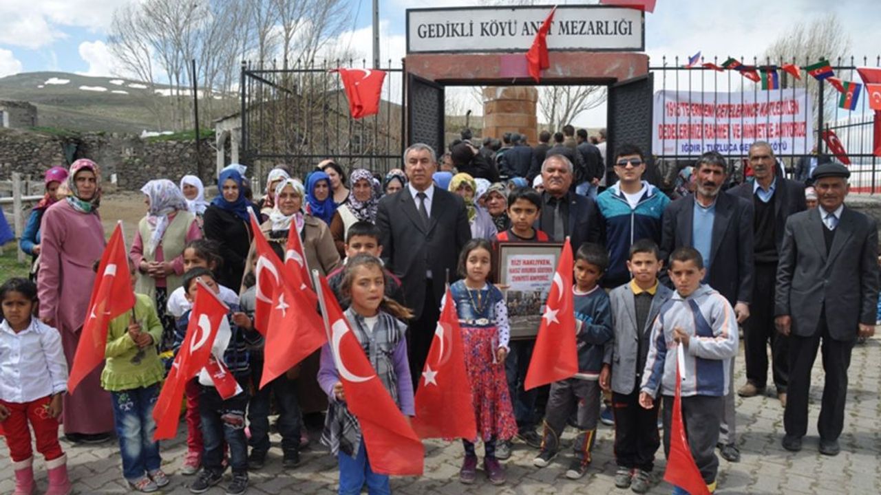 kişilerin torunlarından biri olan Iğdır Kıbrıs Barış Hareketi Gazileri Derneği Başkanı İsmet Tağal''da, "Bundan yaklaşık 80 ve 85 yıl önce bizlerin dedelerini ninelerini Ermeni Çetecileri acımasızca öldürerek bu mezarlığa gömmüşlerdir. Ben ve Gedikli Köy halkı hiçbir zaman bu