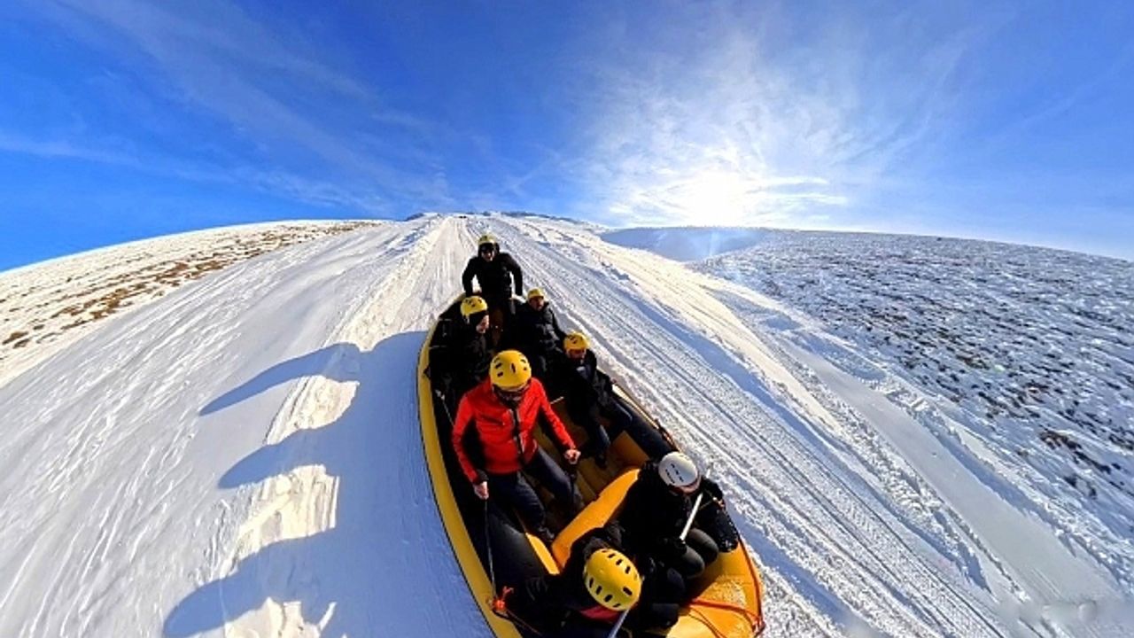 Erzincan''daki Ergan Dağı Kayak Merkezi''nin 2 bin 400 rakımında oluşturulan parkurda adrenalin tutkunlarının kar raftingi renkli görüntüler oluştururken, adeta izleyenlerin nefesini kesti.