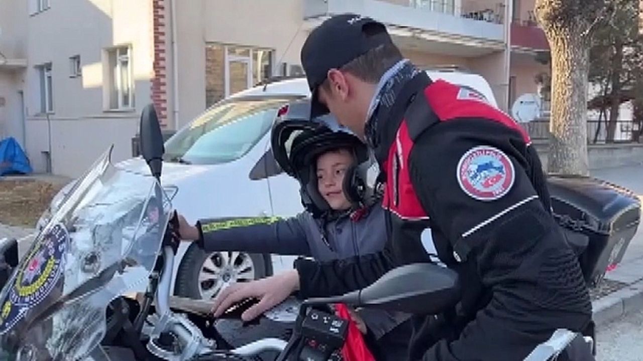 Ekiplerin motosikletine bindirdiği Ahmet Asaf, sonrasında polis aracı ile tura çıkarıldı. Yunus polisleriyle buluşmanın mutluluğunu yaşayan Ahmet, yunus polisi olma hayalinden bahsetti. Bu güzel an için Vali Aydoğdu ve polislere teşekkürlerini iletti.