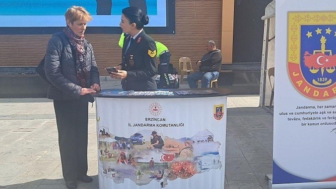 Karayolu Trafik Haftası kapsamında Erzincan''da İl Jandarma Komutanlığı trafik jandarma açtığı stant ile kadın ziyaretçilerini Kadın Destek Uygulaması (KADES) hakkında bilgilendirerek telefonlarına yüklemeleri sağlandı.