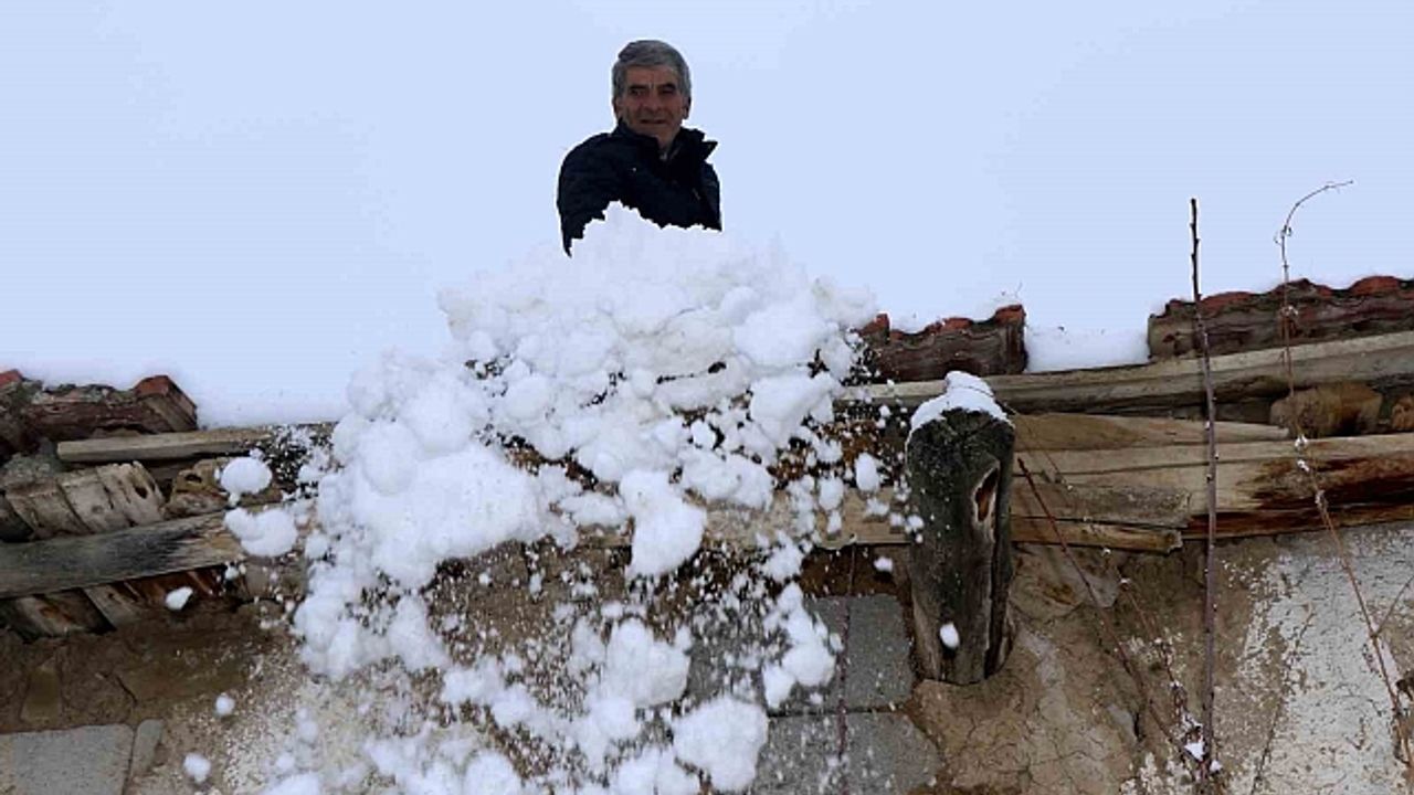 Refahiye ilçesine bağlı köylerde kardan toprak damlı evlerin üzeri kapandı. Bazı vatandaşlar damlarından su akmaması için kar küreme işine koyuldu.