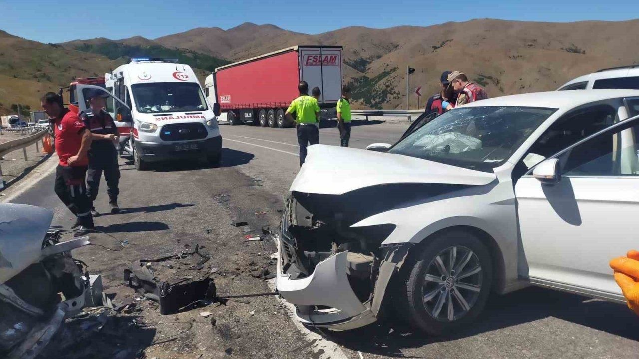 Kaza, Erzincan-Sivas kara yolu Kızıldağ mevkiinde meydana geldi. Alınan bilgiye göre, sürücüleri belirlenemeyen 34 RP 3463 ve 19 BD 617 plakalı otomobiller çarpıştı.