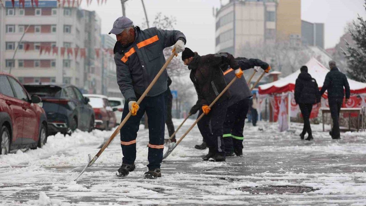 Erzurum Büyükşehir Belediyesi ekipleri, kent merkezinde karla mücadele çalışmalarını gün boyunca sürdürdü.