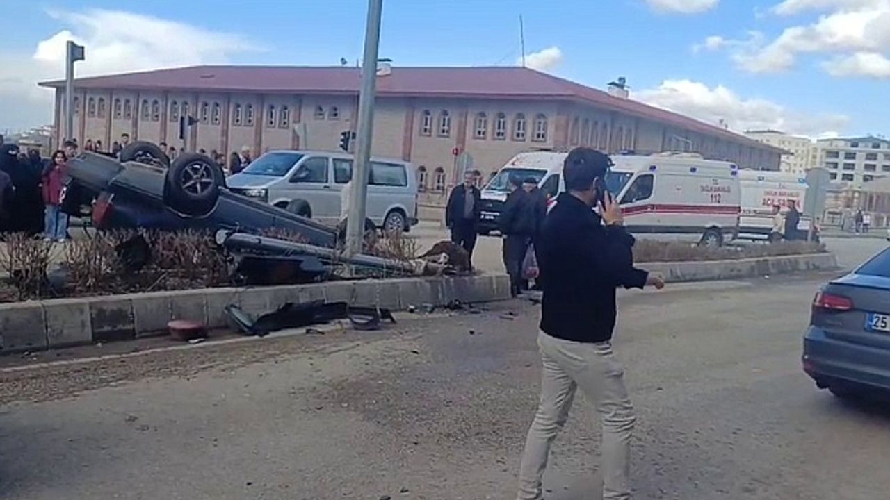 Erzurum''un Yakutiye ilçesine bağlı Recep Akdağ Caddesi''nde meydana gelen trafik kazasında bir araç takla attı, kaza sonrası adeta can pazarı yaşandı. Görgü tanıklarının ifadelerine göre kaza; kırmızı ışık ihlali yapan bir aracın çarpması sonucu gerçekleşti. Kaza sırasında çarpan araç olay yerinden kaçarken, çarpılan araç takla atarak ters döndü. Araçta bulunan dört kişiden birinin bacağının kırıldığı öğrenildi.