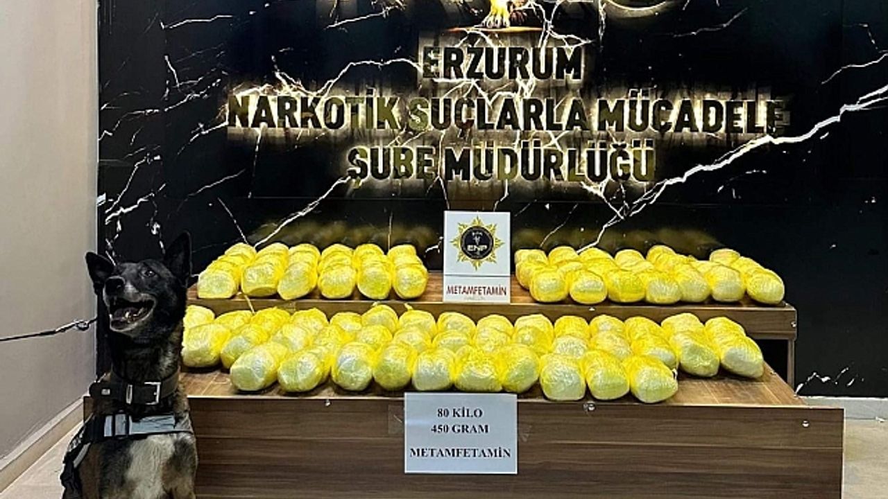 Erzurum''da polisin düzenlediği operasyonda 80 kilo 450 gram metamfetamin maddesi ele geçirildi.