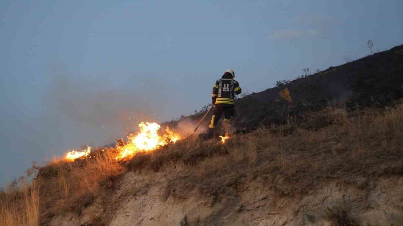 Erzurum"da havai fişek nedeniyle çıkan ot yangını itfaiye ekiplerince söndürüldü.